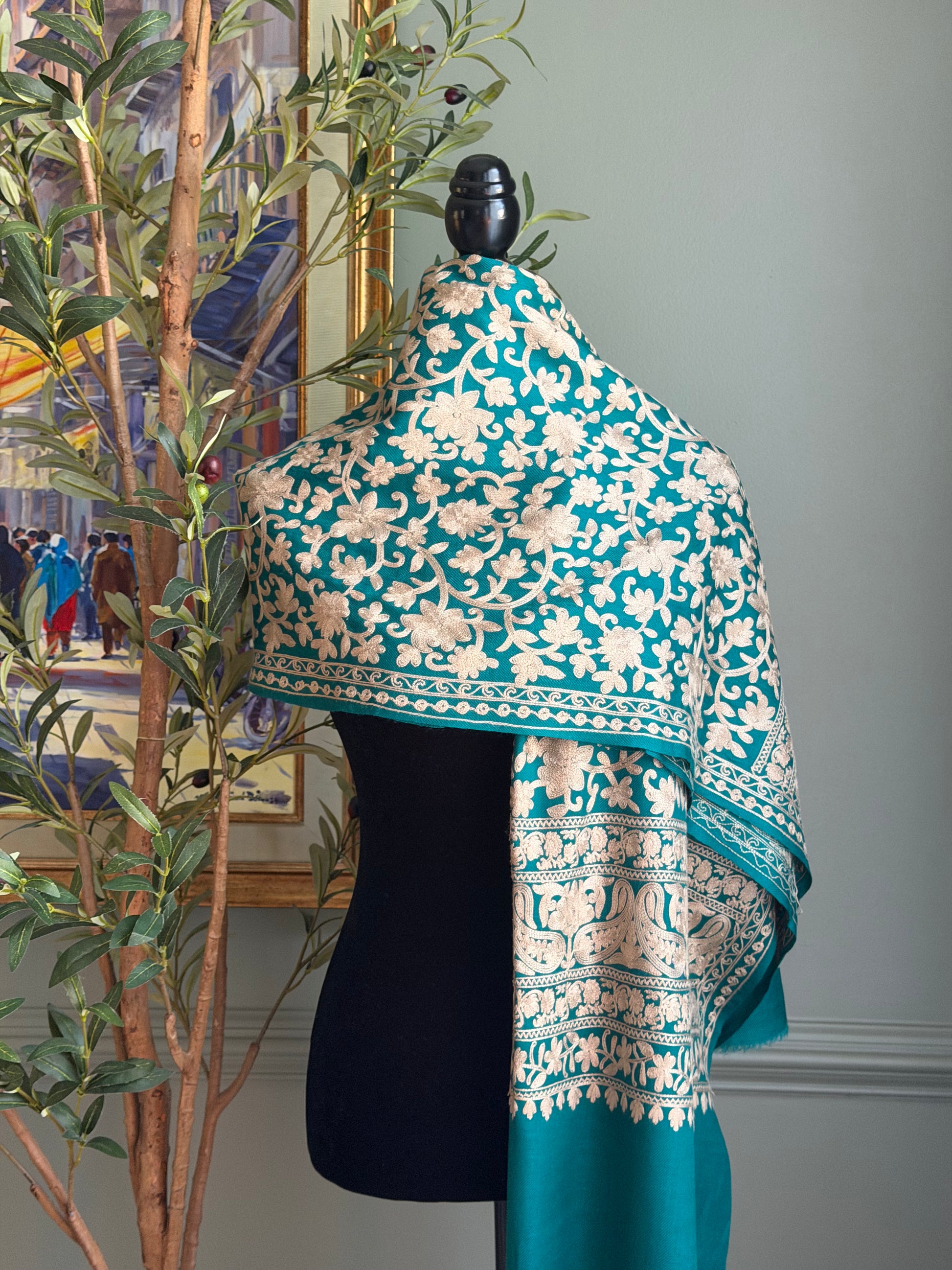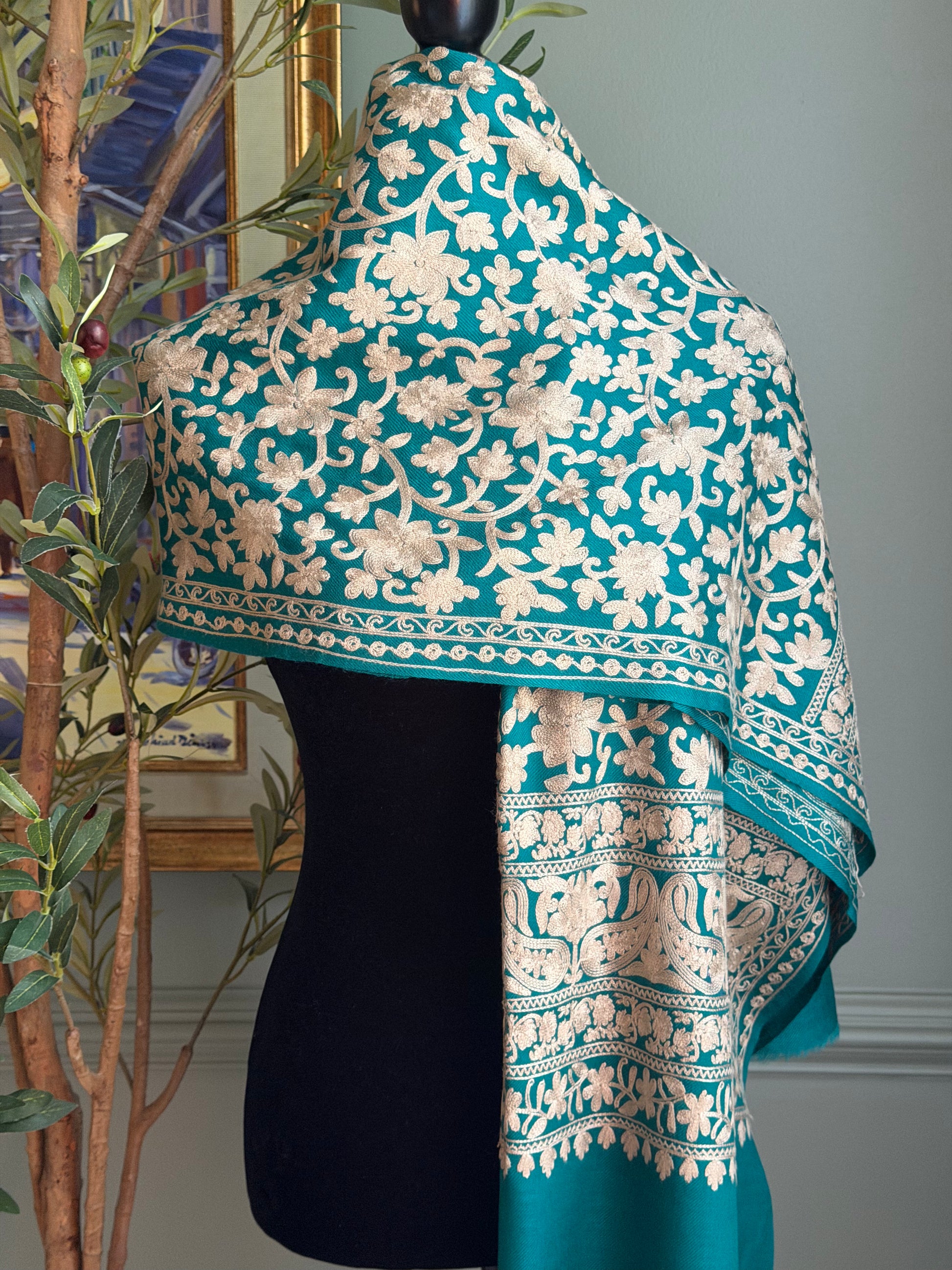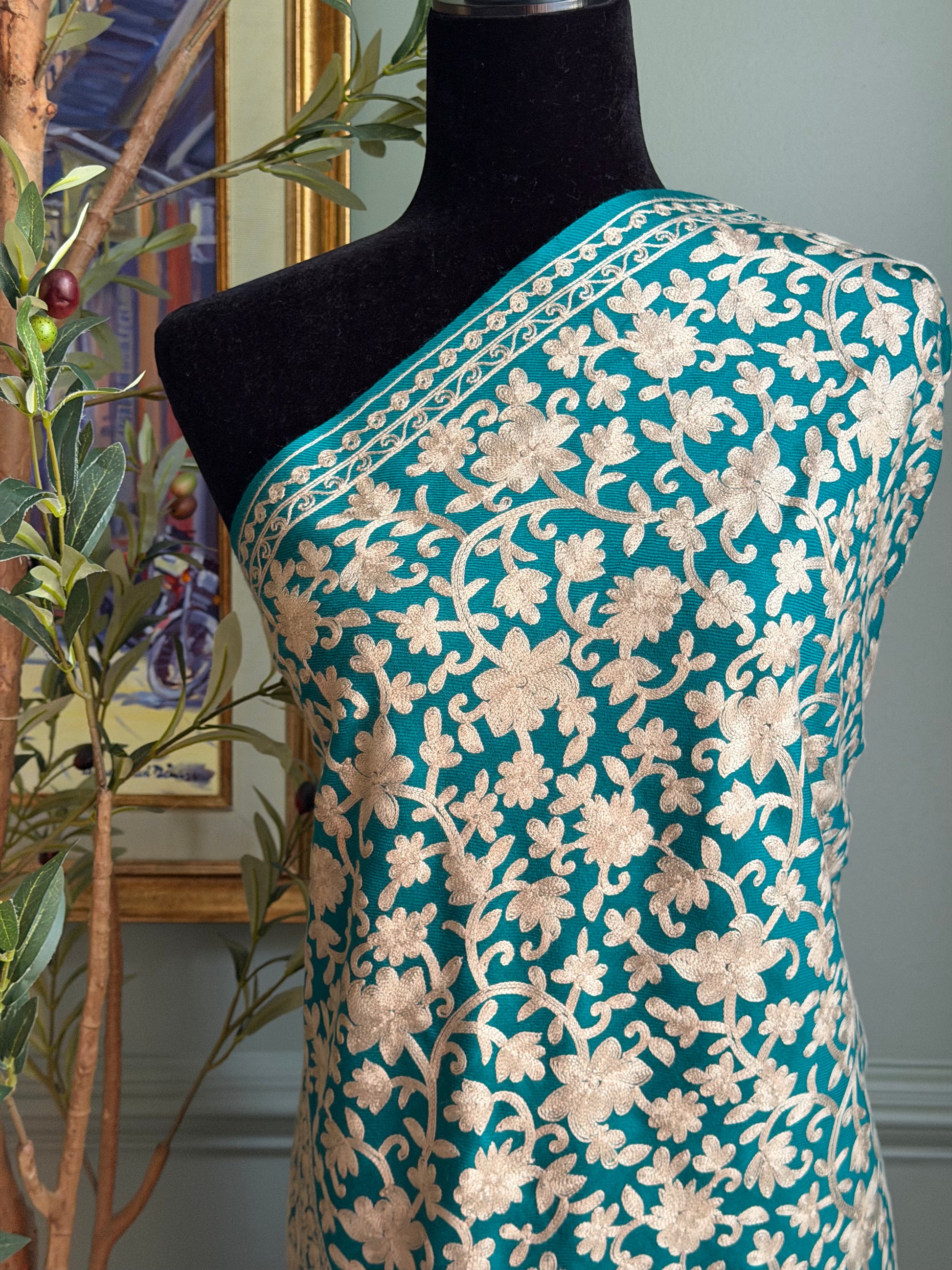 Indulge in the luxurious elegance of this shawl. Made with exquisite golden thread work, this sophisticated and stylish piece is perfect for those who appreciate refined fashion.