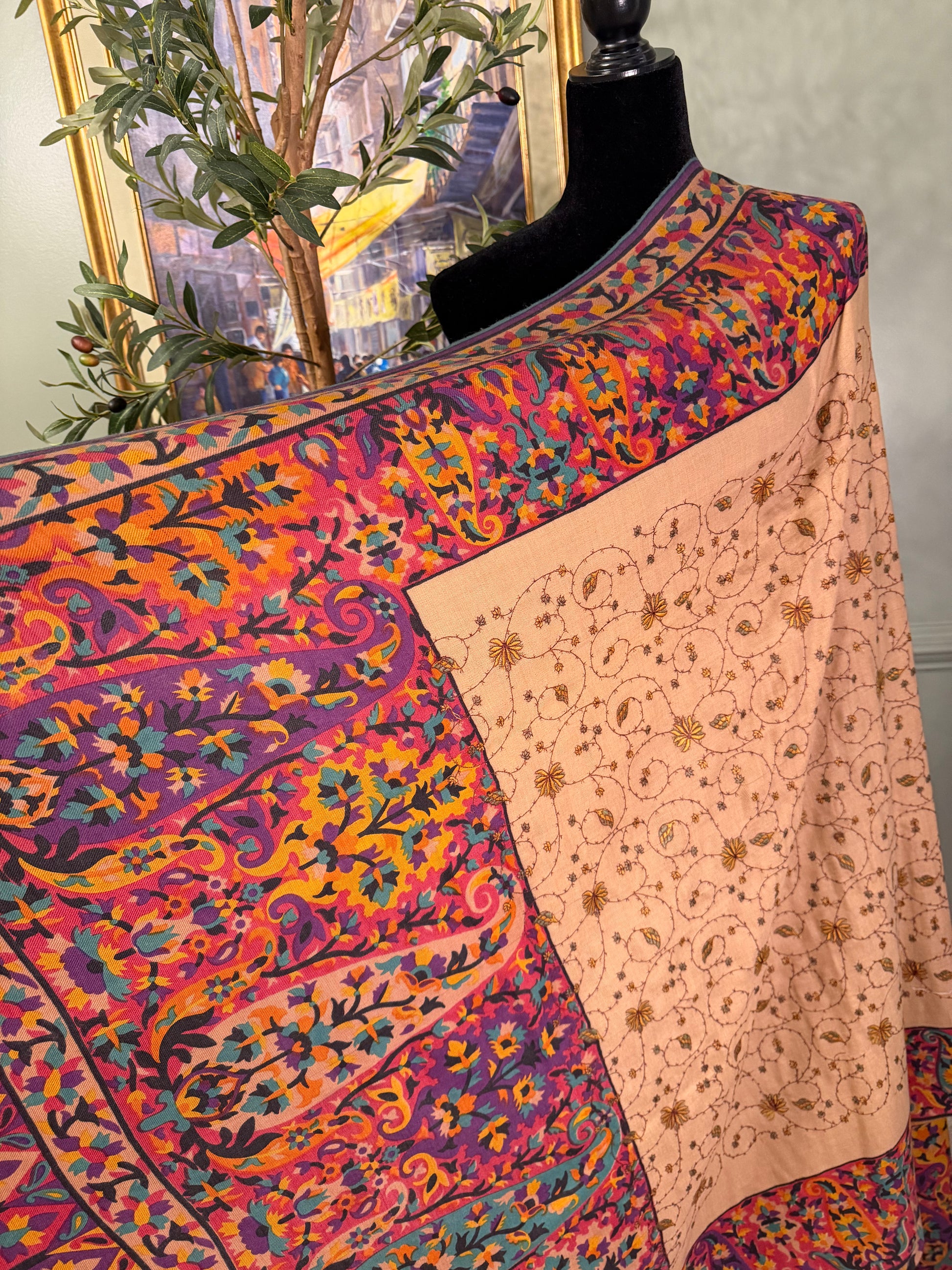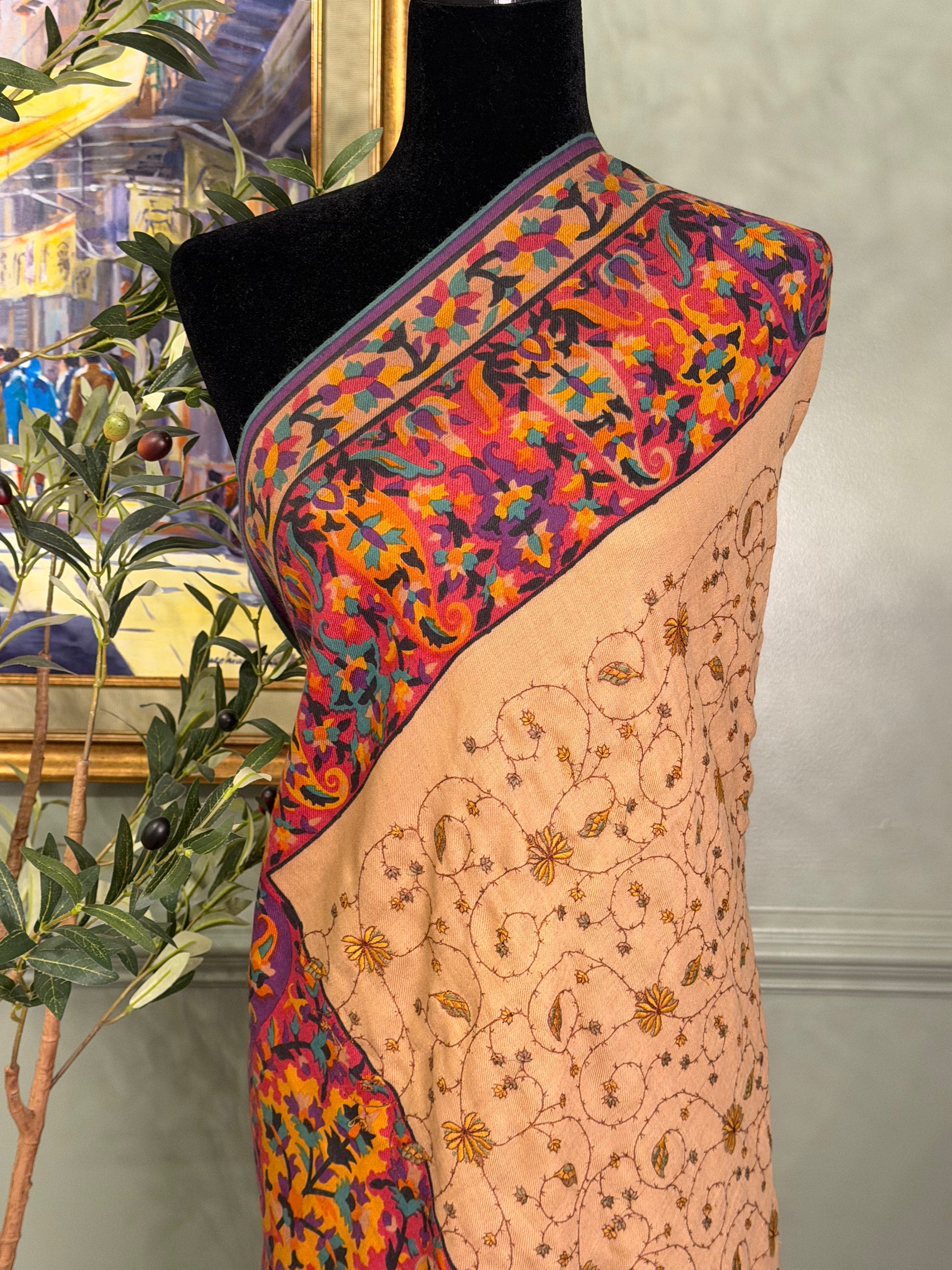 Heritage Bloom features a vibrant printed pattern along the sides with delicate embroidery at the center. This beautiful, elegant piece instantly elevates any outfit while bringing joy to your day.