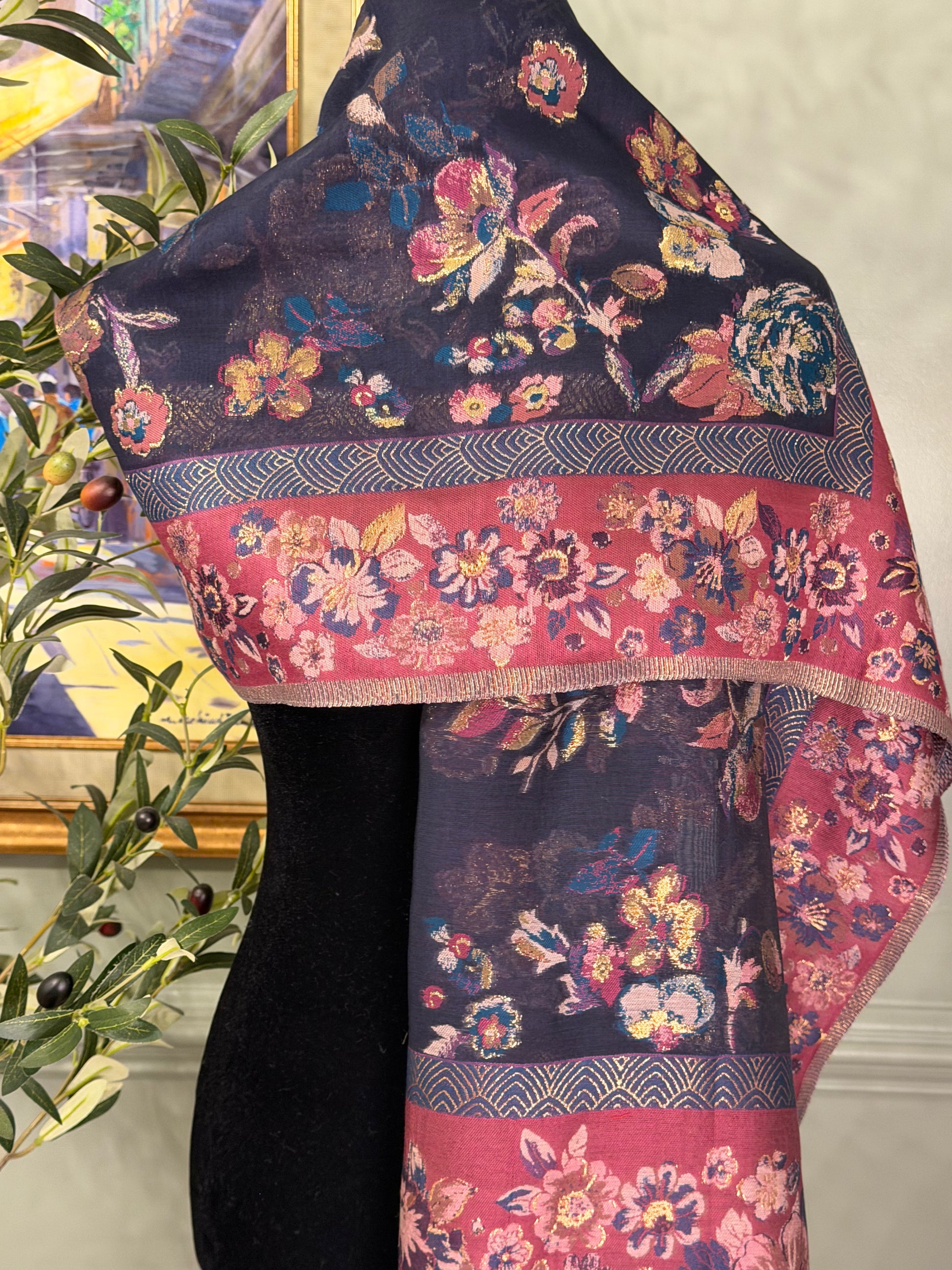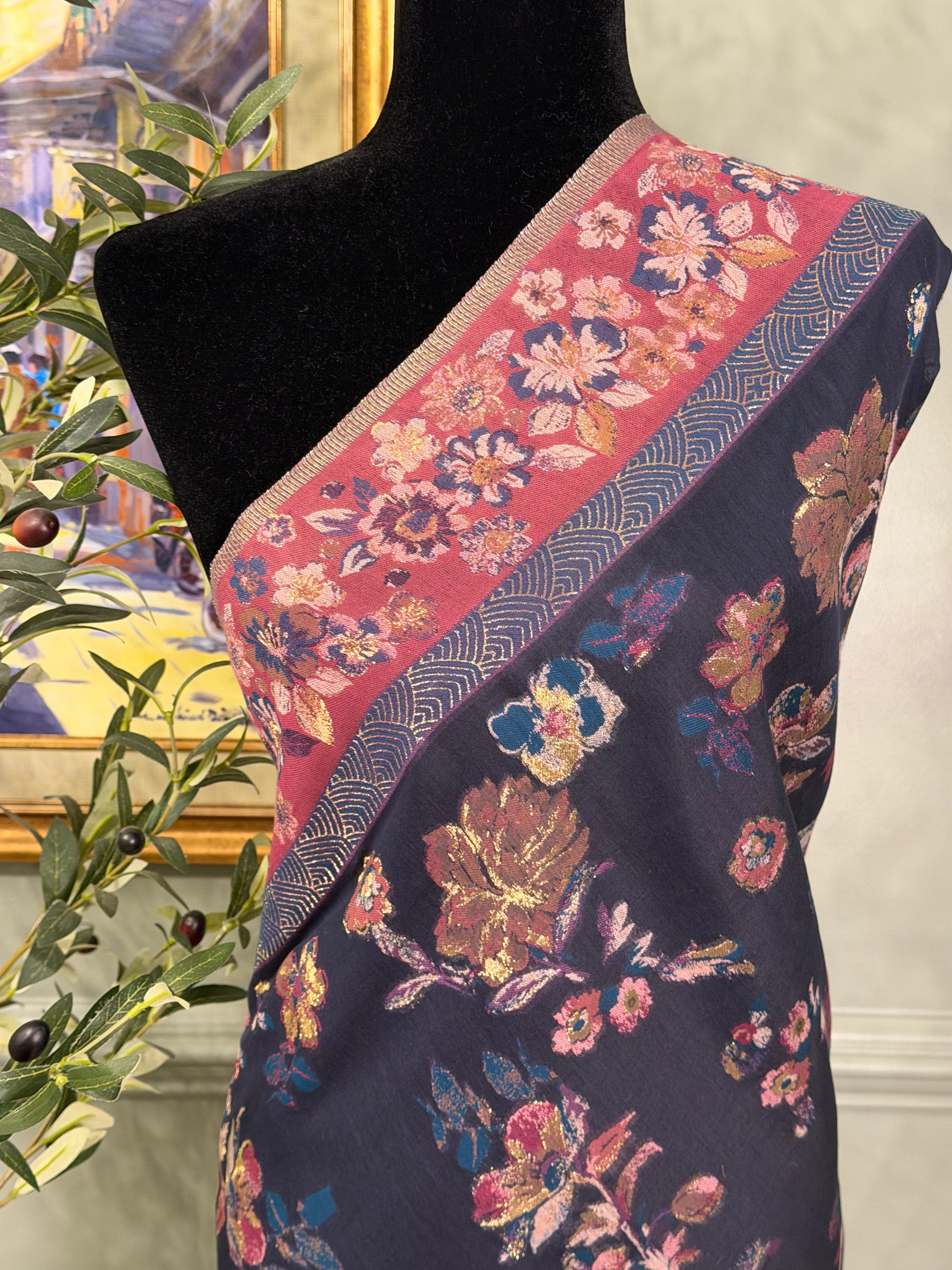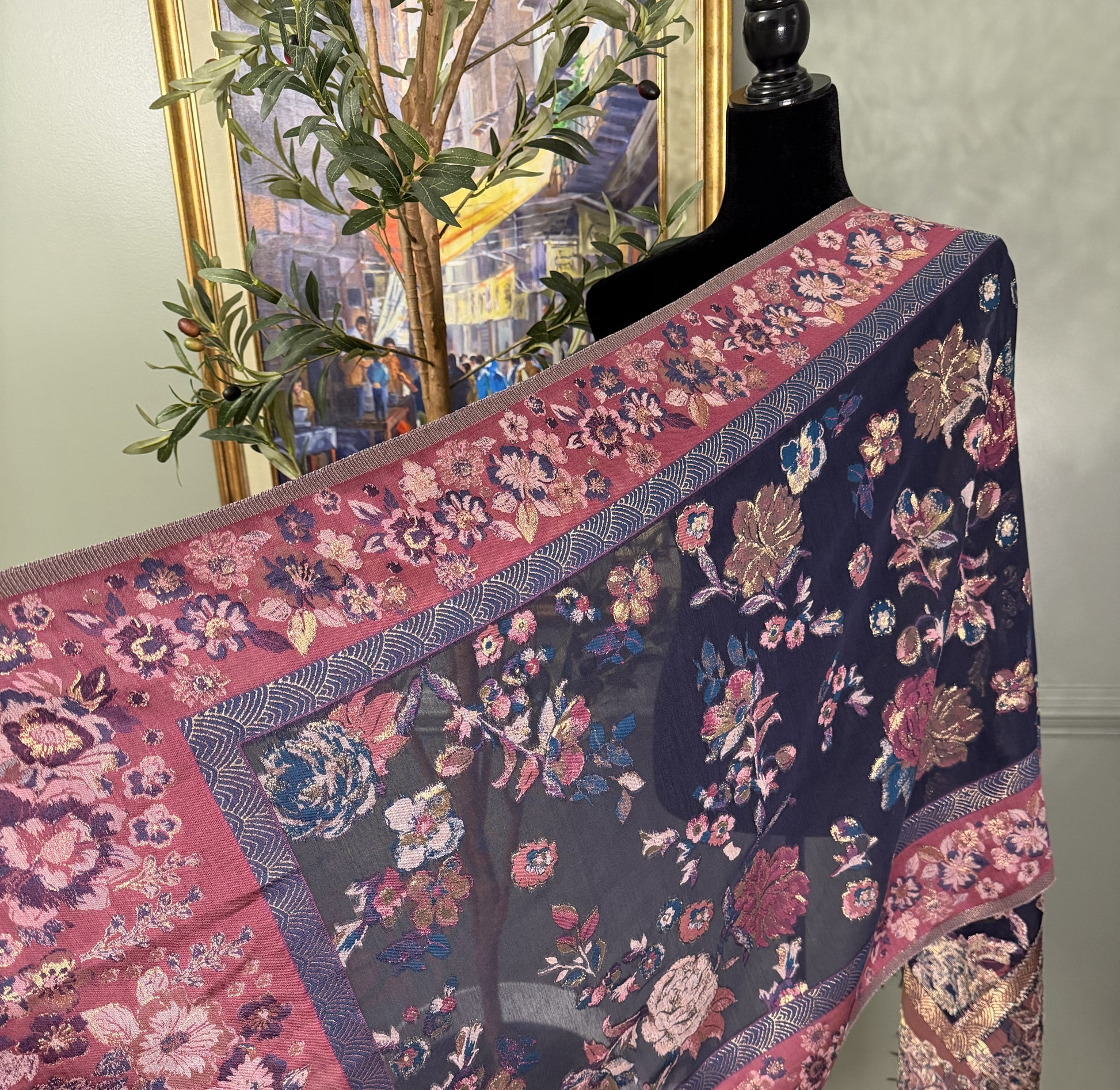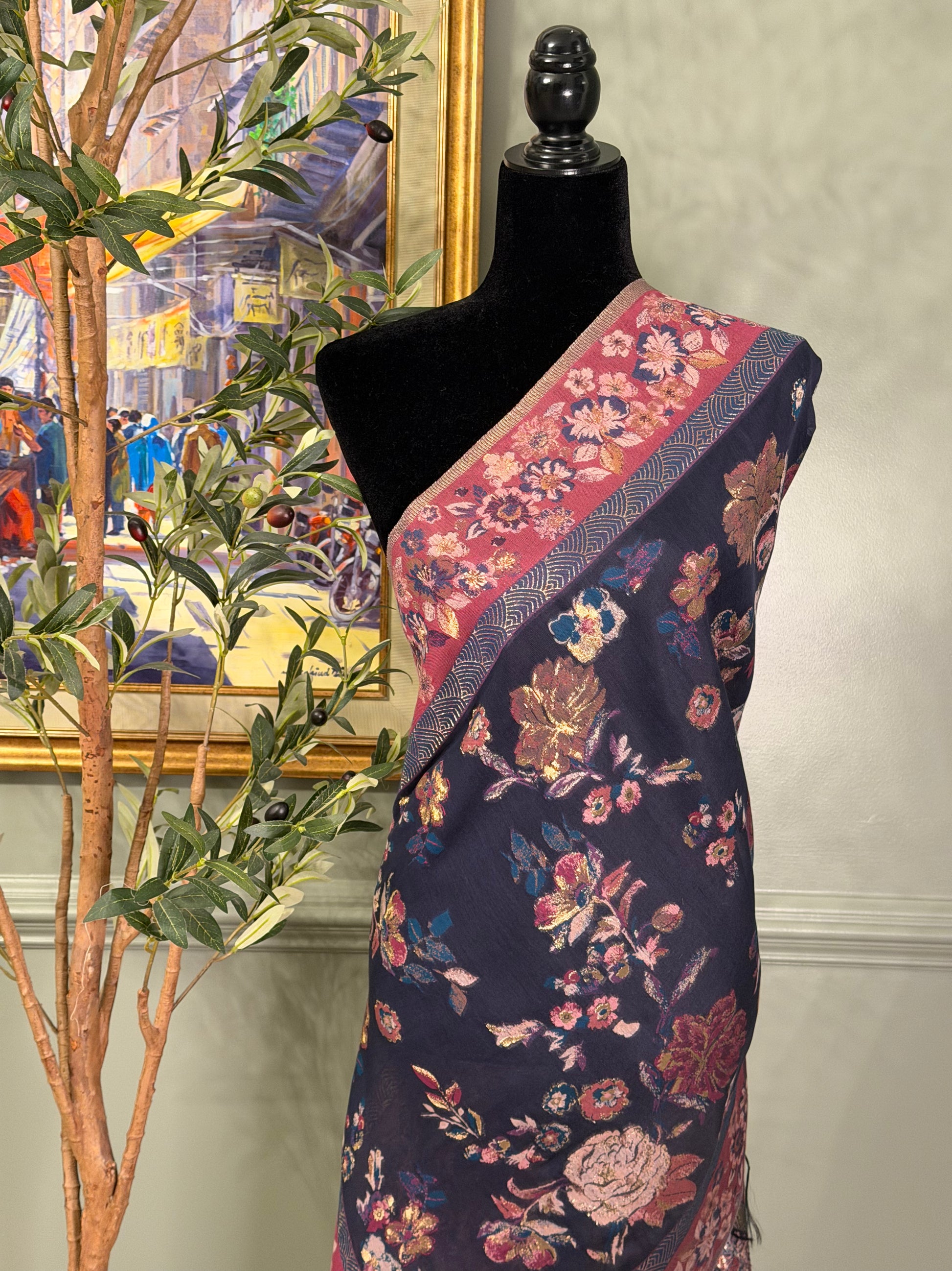 A stunning blue silk pashmina with delicate kani floral work. Perfect for weddings and special occasions, this elegant piece combines traditional craftsmanship with timeless style. Drape it with confidence and grace.