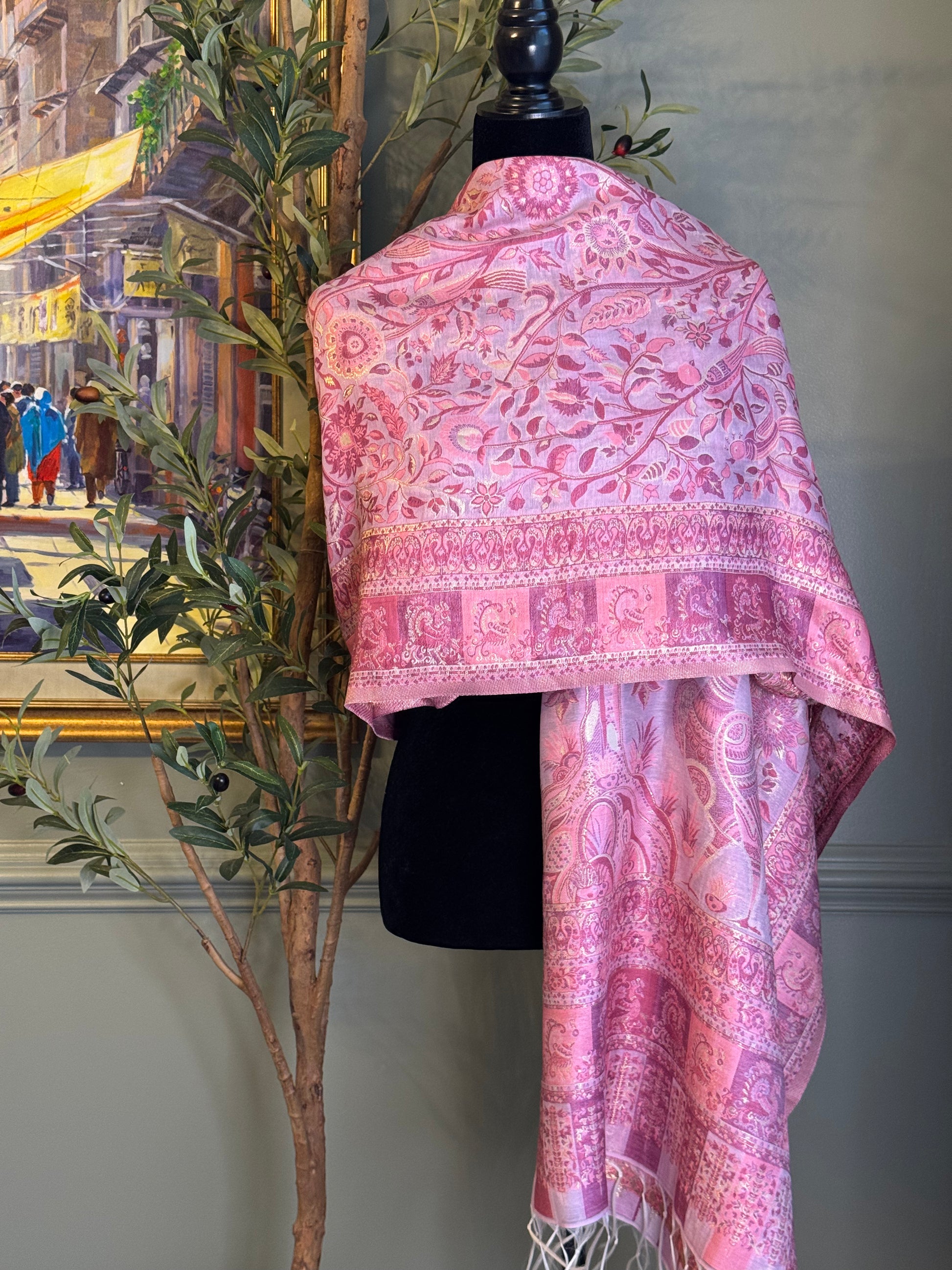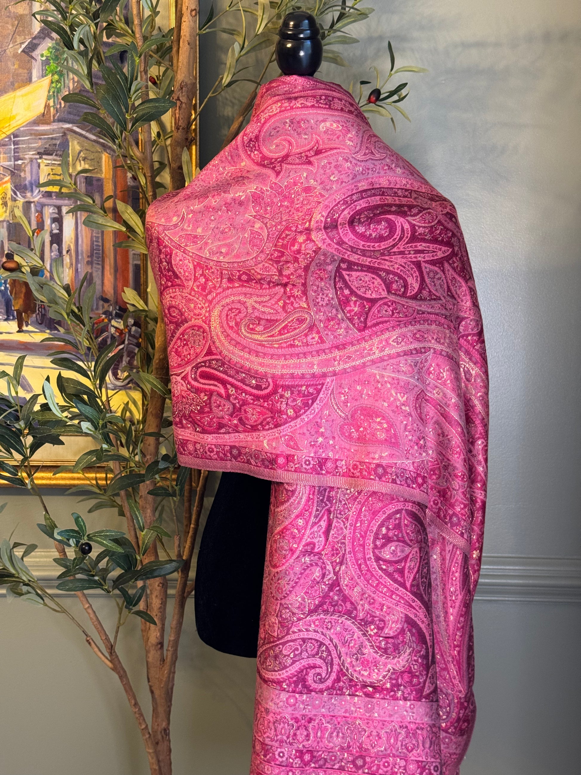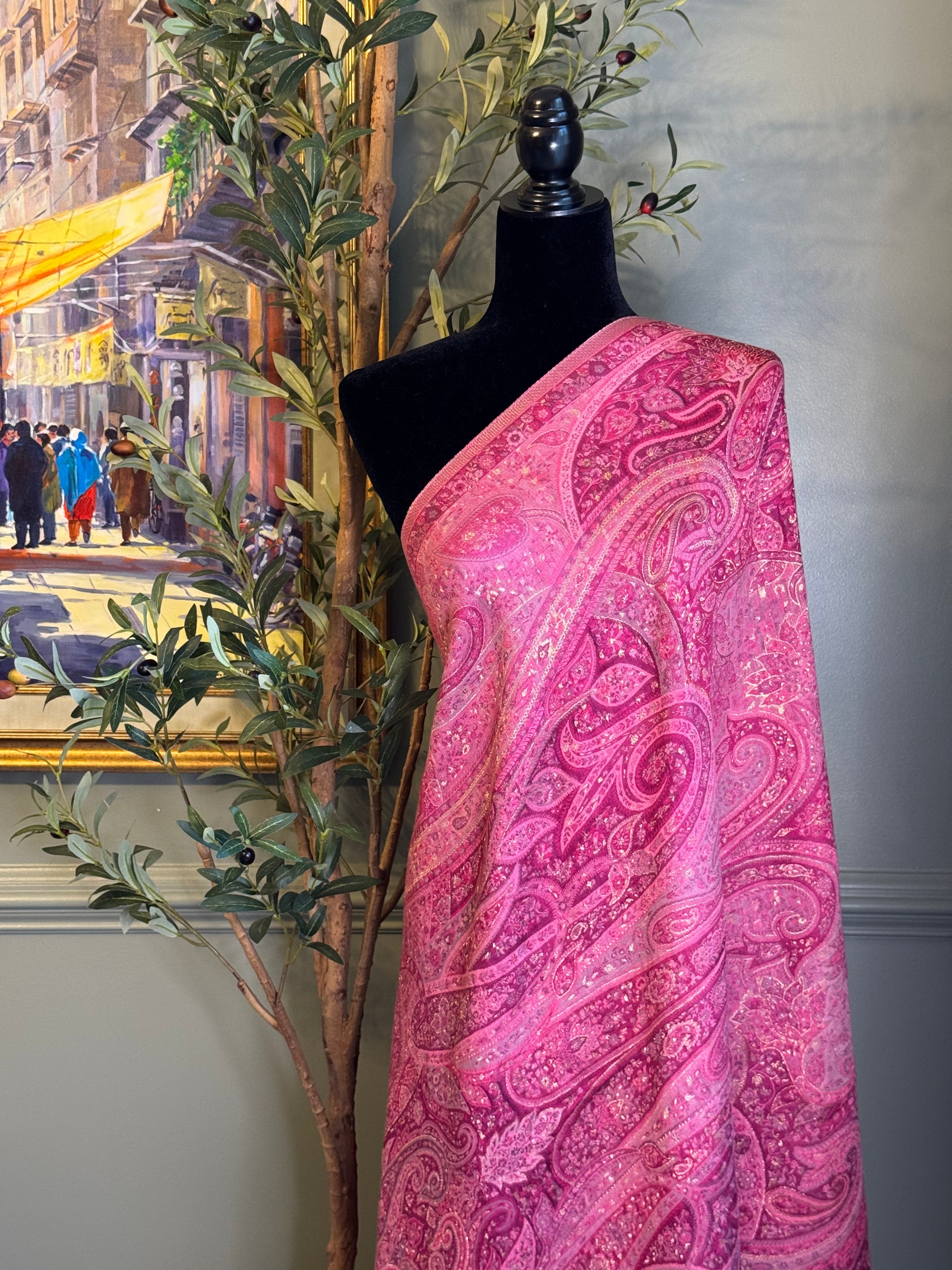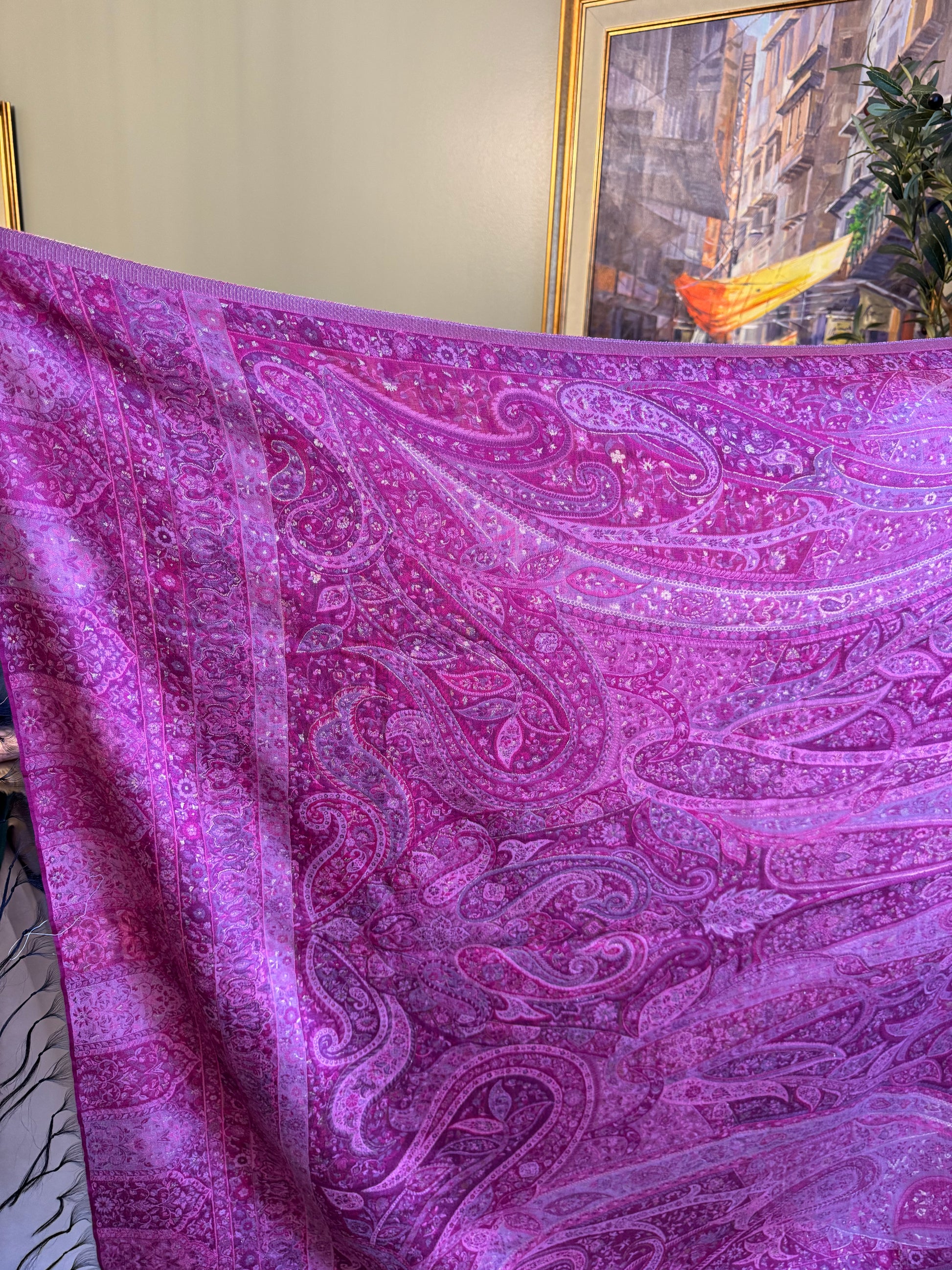 Rose Charm is a soft, smooth silk shawl with an elegant design. Its refined look adds a graceful touch to weddings or special occasions, combining comfort with style.