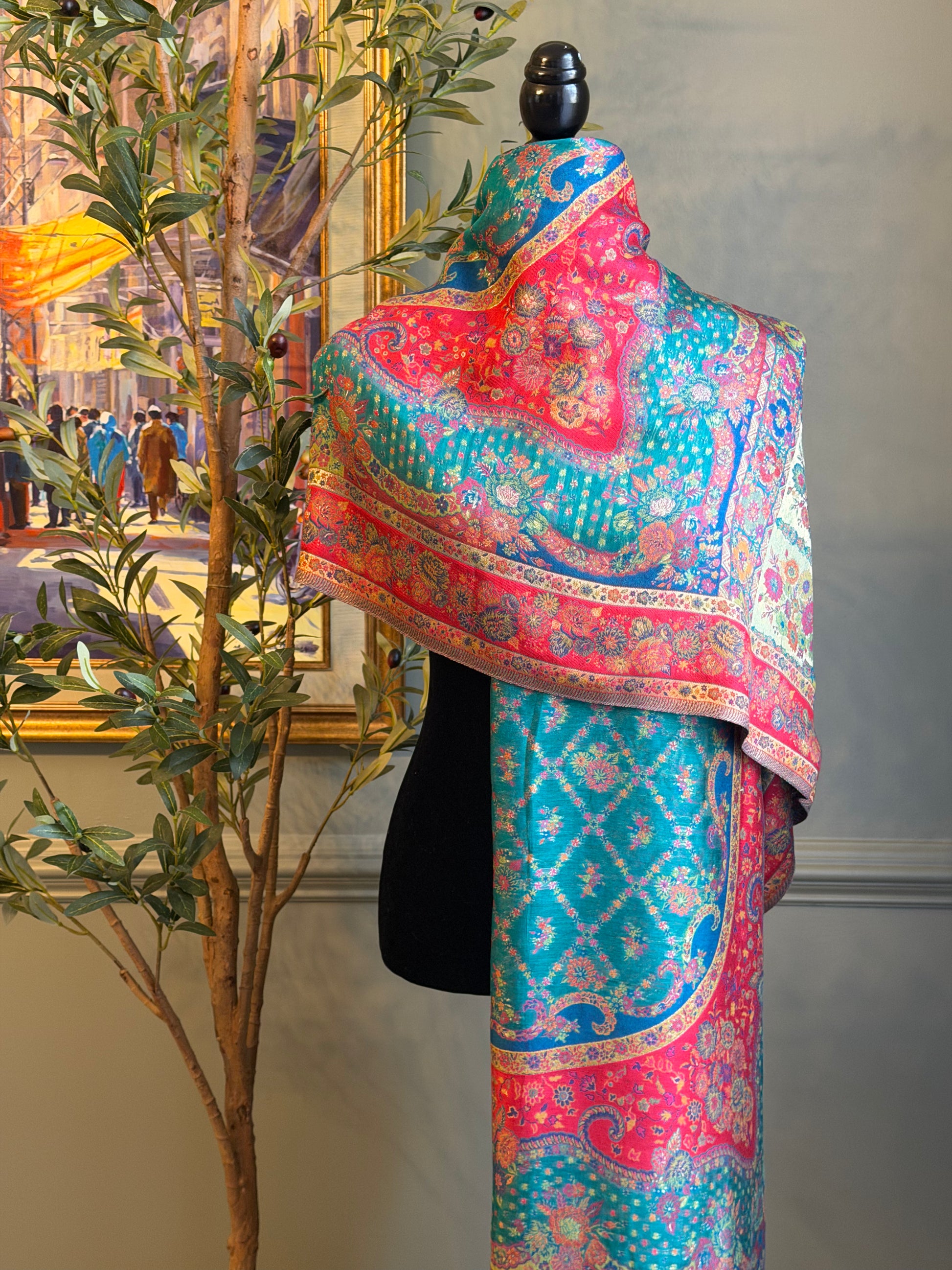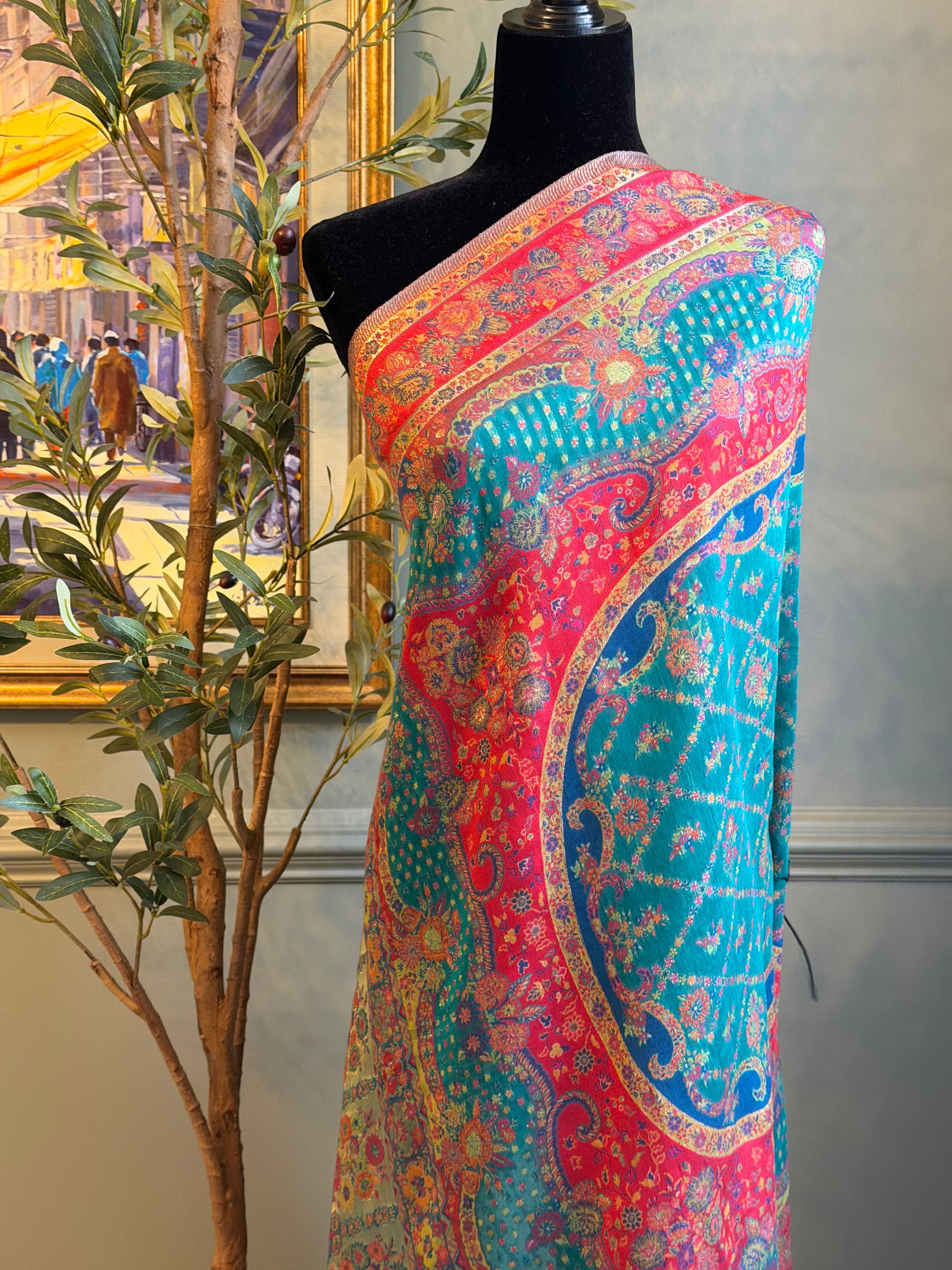 Royal Charm is an elegant blue and red silk kani shawl designed to elevate any occasion. This luxurious piece combines rich colors with traditional craftsmanship, making it a versatile addition to your wardrobe for both everyday sophistication and special events.
