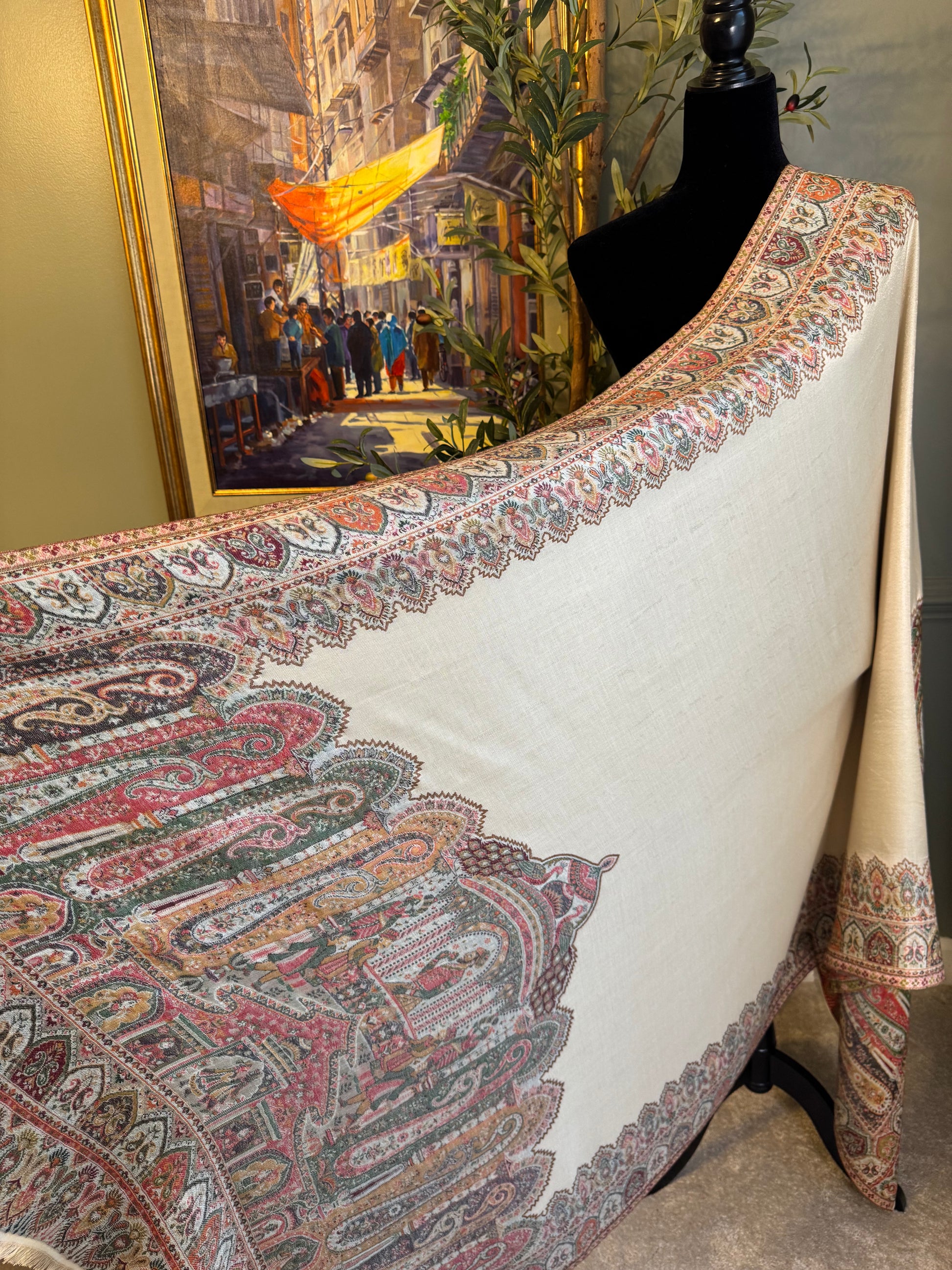 Composition: Silk Wool shawl with Kani work on it on the borders