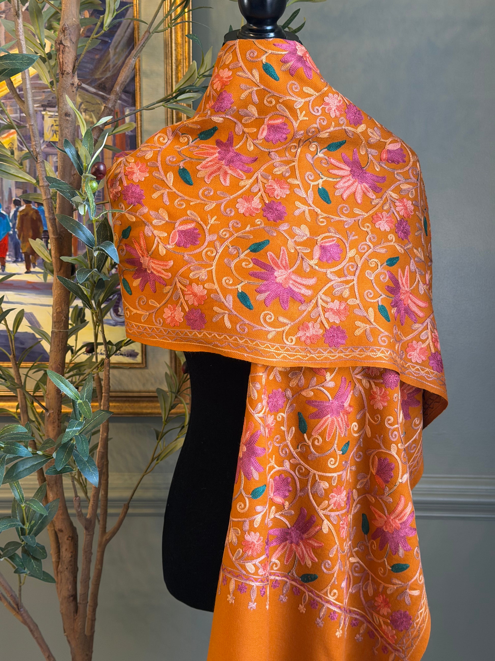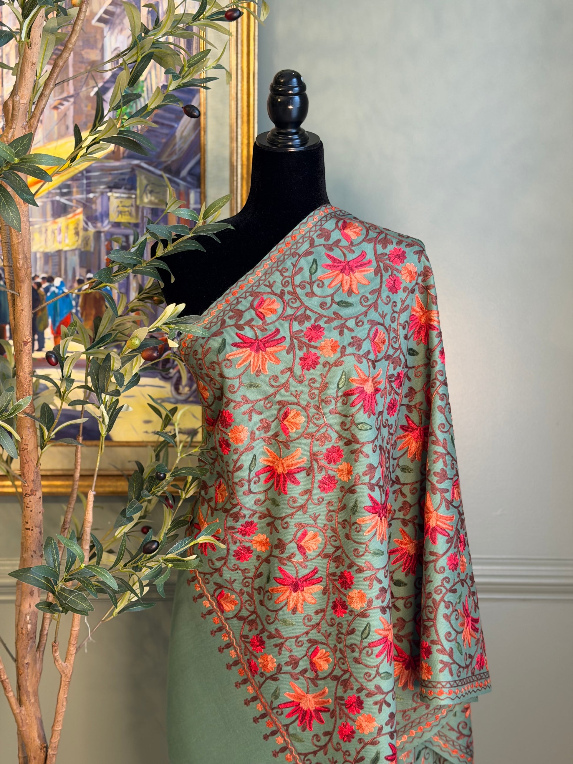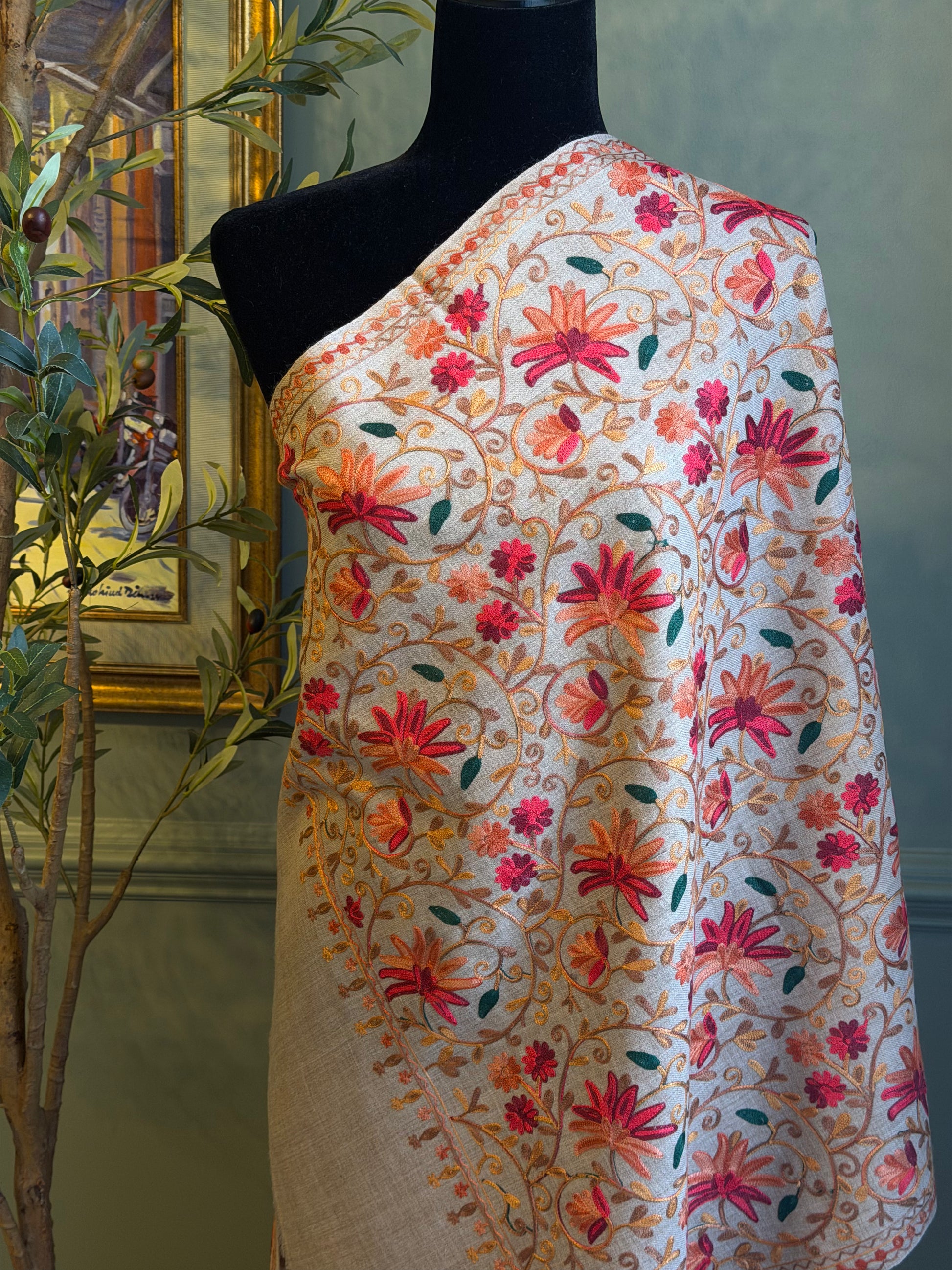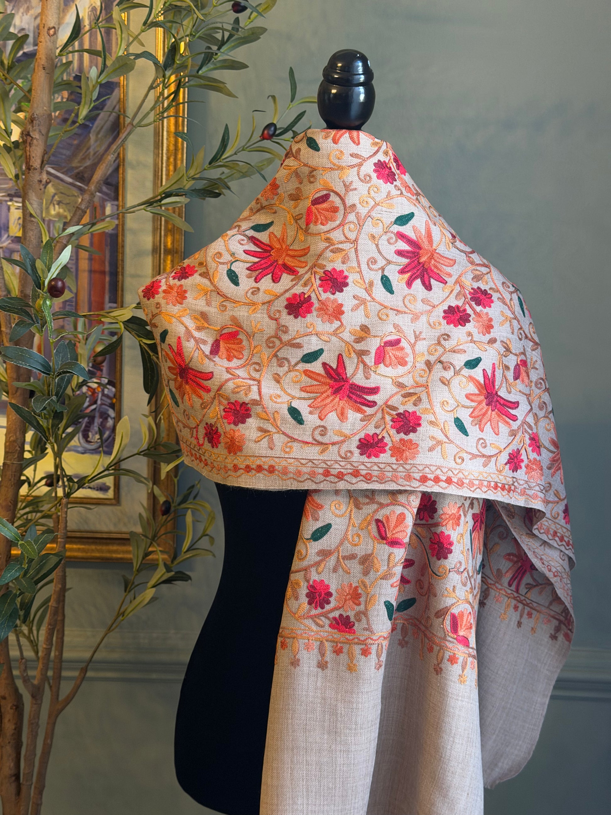 Stay stylish and comfortable all year round with our elegant flowery shawl. Its soft and lightweight fabric makes it perfect for any season, while the intricate floral design adds a touch of sophistication to any outfit.