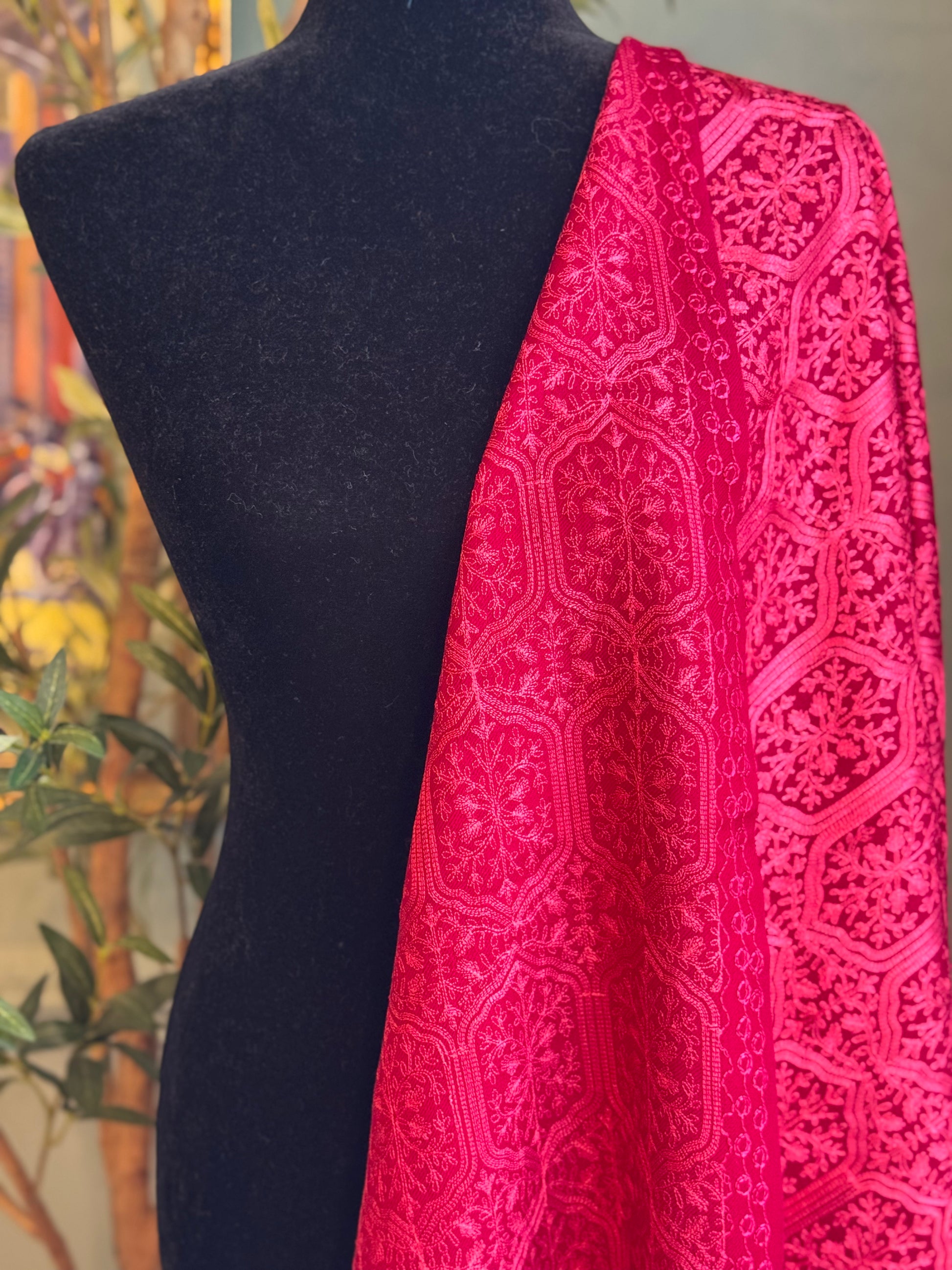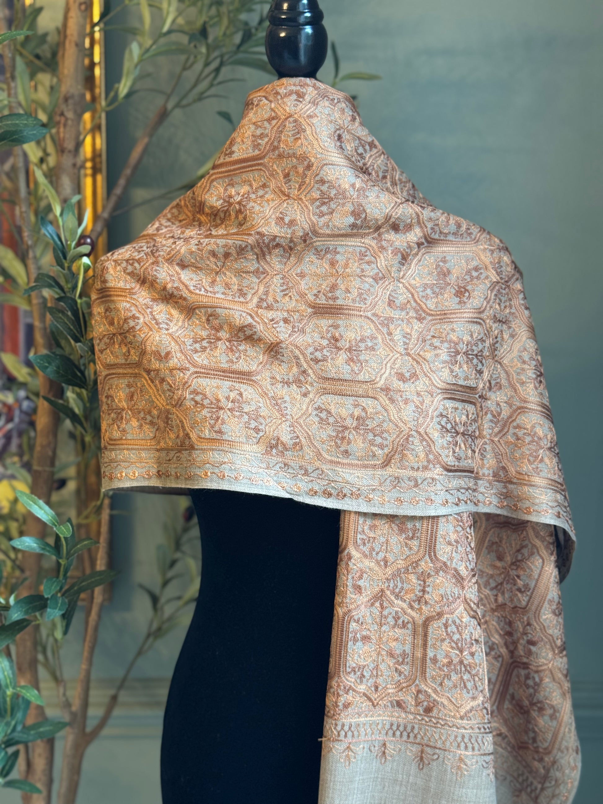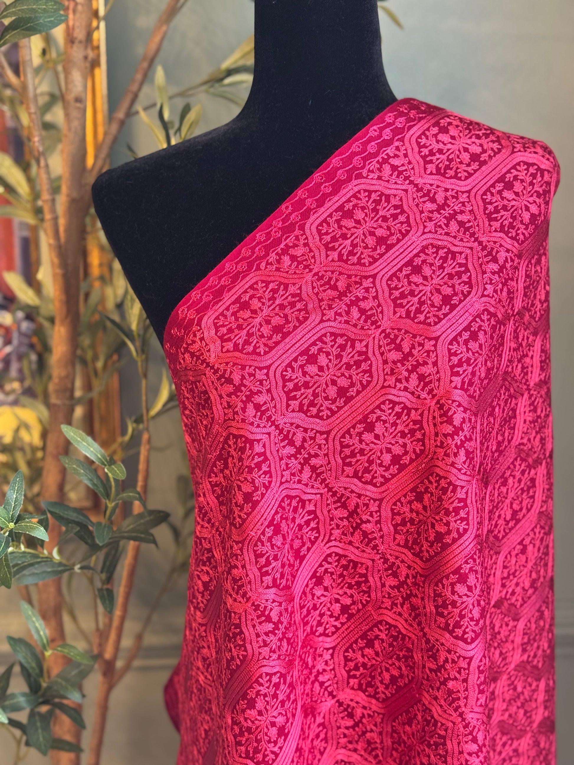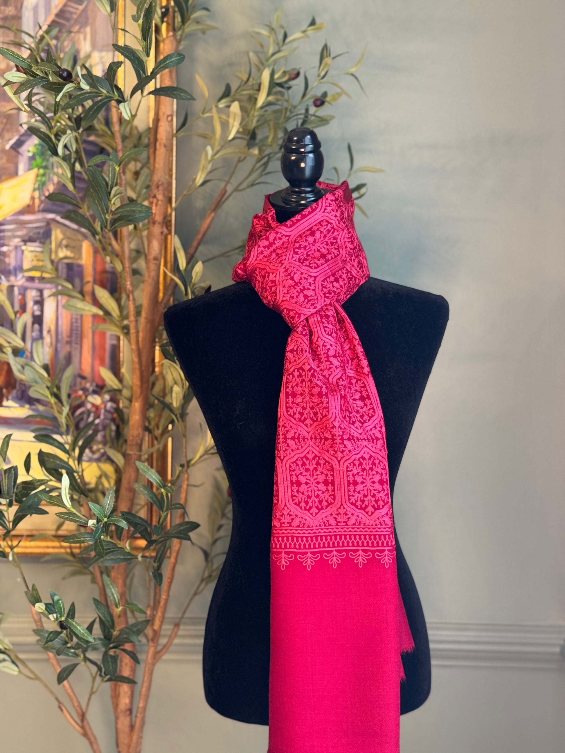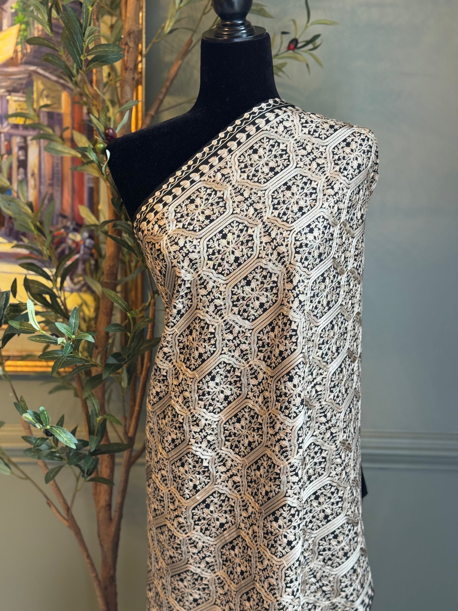 Threaded Grid combines year-round comfort and style with its soft, lightweight fabric that suits every season. Featuring an elegant floral pattern on one side and delicate threadwork on the reversible back, this wrap adds a versatile, sophisticated touch to your wardrobe. Feel confident and polished no matter the weather with Threaded Grid.